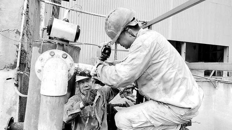 7月18日,建材控股福州混凝土公司污水處理設(shè)備突發(fā)故障。該公司生產(chǎn)部立即啟動緊急預(yù)案,機修工作人員頂著40攝氏度的高溫進(jìn)行搶修。經(jīng)過3小時奮戰(zhàn),污水處理設(shè)備恢復(fù)使用。(盧函蕊 攝)