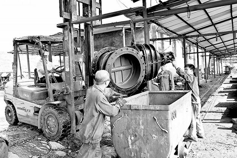 6月份以來,福建煤電公司龍?zhí)睹旱V在井下306采區(qū)新建一個區(qū)段水泵房,增加水倉容量為1400m3 ,目前已經(jīng)進入后期管道安裝階段。圖為8月1日,機電隊機修人員用叉車吊裝水泵閘筏裝車準(zhǔn)備運送到井下。(陳思忠 攝)