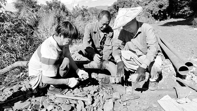 近日,天湖山能源公司機電辦康隊長帶領精兵強將,堅守在近40攝氏度高溫的戶外,為鉛坑片區(qū)土地復墾的39畝水稻田安裝引水灌溉使用的抽水管道。(劉冬梅 攝)