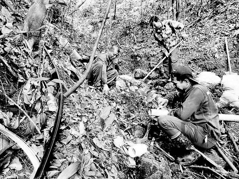 近日,由于天氣炎熱干燥,漳平煤業物業管理開發公司組織職工為文賓山復墾區十多畝旱地農作物,安裝引水灌溉使用的管路。(沈建霞攝)