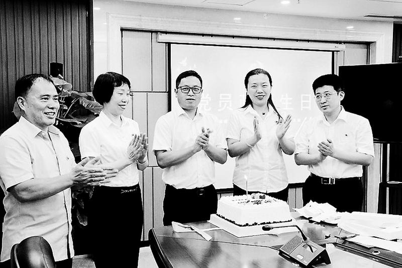 石化集團黨支部進一步豐富黨組織政治生活的內涵,通過在黨員中推行“政治生日”,激勵黨員在工作中敢于擔當、忠誠履職。圖為8月10日,石化集團本部黨支部首次為支部黨員過“政治生日”,發放“政治生日”賀卡。(謝曦攝)