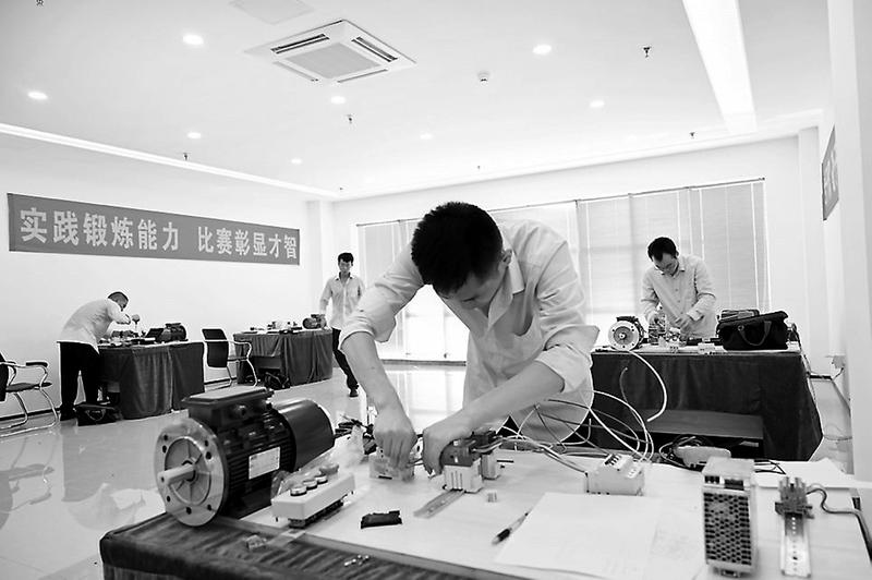 近日,福能新能源公司2022年度職工技能競賽正式拉開帷幕。目前競賽所有專業理論考試已全部結束,技能及實操考試正緊鑼密鼓進行中。圖為近日,該公司進行電力機械設備維修項目實操比賽。(鄢青梅 陳偉健攝)