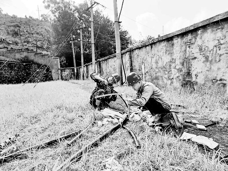 永安煤業公司上京供電所運維班組人員冒著高溫天氣進行設備檢修,確保電網安全穩定運行。圖為8月29日,該所運維班組人員在上京礦區110千伏變電站制作備用高壓開關柜進線電纜接頭。(鄭春生攝)
