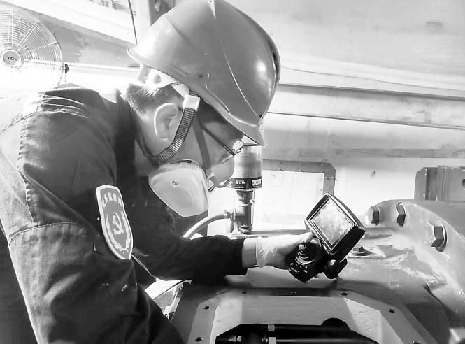 林劍輝進行齒輪箱內窺鏡檢查