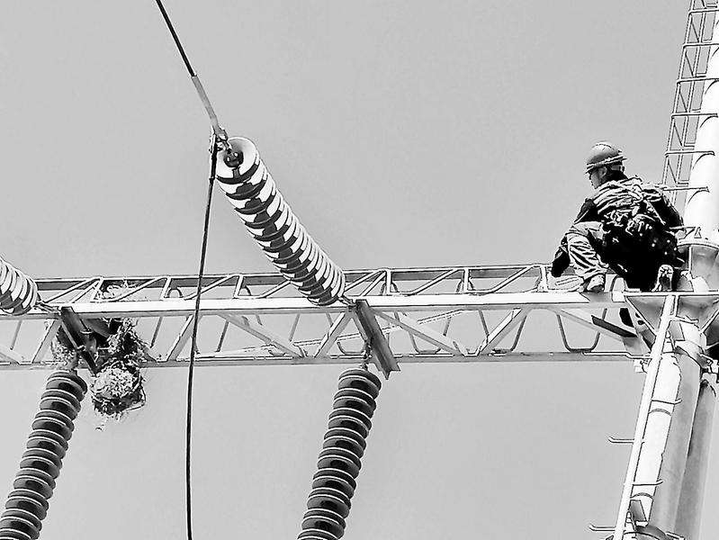 9月3日,福能新能源公司漳州隆教升壓站利用配合對側(cè)停電檢修的時機(jī),進(jìn)行站內(nèi)專項消缺工作,及時消除了影響升壓站安全運(yùn)行的隱患。圖為檢修人員正在清除110kV出線龍門架上的鳥巢。(江偉忠 江偉坤 攝)