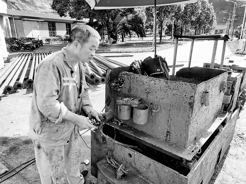 為切實(shí)保證一線的正常生產(chǎn),永安煤業(yè)公司蘇橋煤礦積極做好設(shè)備檢修工作,為一線送去優(yōu)質(zhì)的后勤保障服務(wù)。圖為近日,該礦機(jī)運(yùn)隊(duì)職工在維護(hù)檢修出井的電瓶車。(陳君賢 攝)