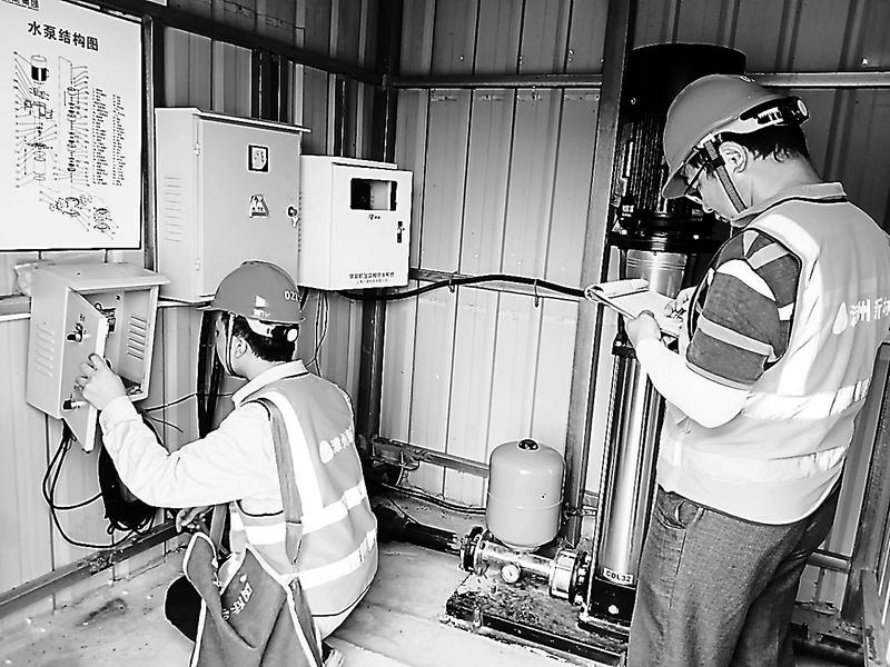 近日,漳州新材公司組織人員對一、二級水泵進(jìn)行巡查,排除一切可能影響水源安全的不良因素,保證生產(chǎn)、生活正常用水。圖為8月28日,工作人員正在檢查供水設(shè)備。