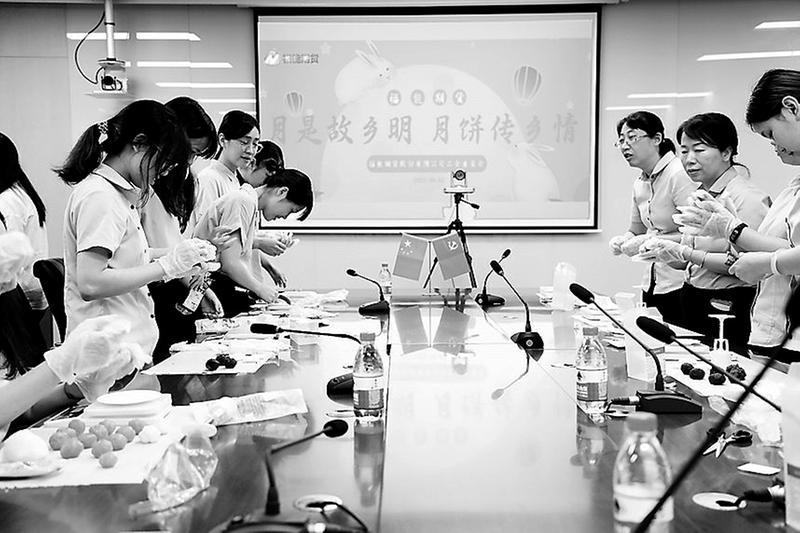 9月1日,福能期貨公司工會開展迎中秋做月餅活動,共話工會情。同時還為無法離開工作崗位的員工送上了一份“愛心月餅”,讓每個人都沉浸在節(jié)日的溫馨氛圍中。(付簫硯 攝)