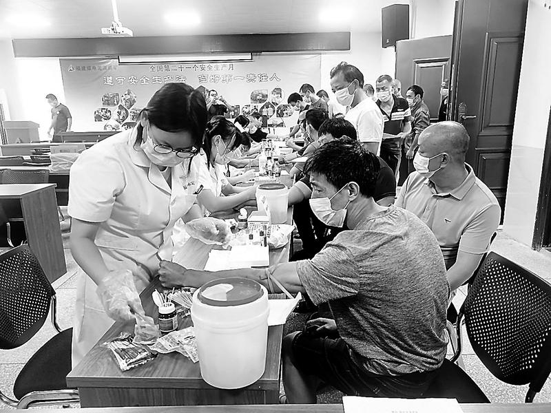 近日,福能(永定)醫(yī)院組織業(yè)務(wù)骨干到福建煤電公司龍?zhí)睹旱V開展在崗職工職業(yè)健康體檢工作,為煤礦工人“送健康”。