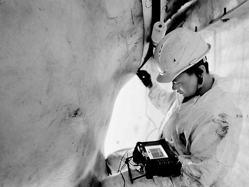 近期,福能新能源公司省山風(fēng)電場利用相控陣超聲檢測儀、磁粉檢測儀等高精度儀器為風(fēng)機軸承等大部件進行了一次“深度體檢”,并建立風(fēng)機健康檔案,為保障設(shè)備的長期安全高效運行提供了依據(jù)。圖為9月19日,工作人員正在對風(fēng)機葉片軸承進行超聲檢測。(江偉忠 黃鎮(zhèn)南攝)