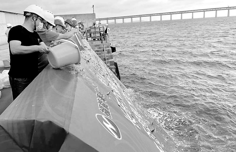 為促進(jìn)海洋生態(tài)文明建設(shè),維護(hù)海域生物多樣性和海洋生態(tài)安全,9月23日,福能海峽公司在松下鎮(zhèn)鑫海碼頭舉行了長(zhǎng)樂外海海上風(fēng)電場(chǎng)C區(qū)項(xiàng)目生態(tài)修復(fù)水生生物增殖放流儀式。本次放流投放魚苗共計(jì)700萬尾。(夏海濱 許嫣婷 攝)