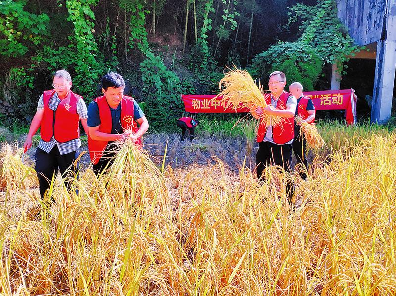 福建煤電公司組織煤礦井口土地復墾區水稻收割活動