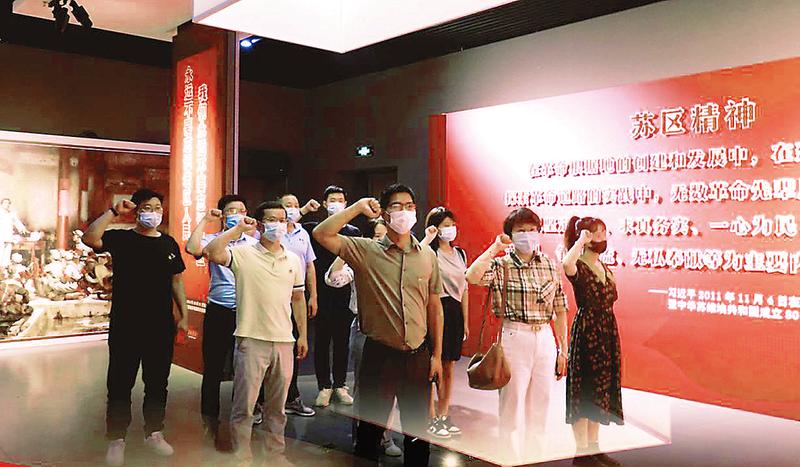 9月29日,石化供銷公司第一黨支部到福建省博物館參觀“喜迎黨的二十大”系列主題展覽。圖為支部黨員重溫入黨誓詞。