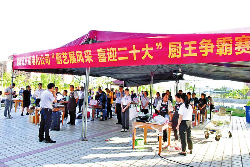 近日,東南電化公司在生活區舉辦“廚藝展風采喜迎二十大”廚王爭霸賽比賽共有8支隊伍、24名員工參加。(林萌攝)