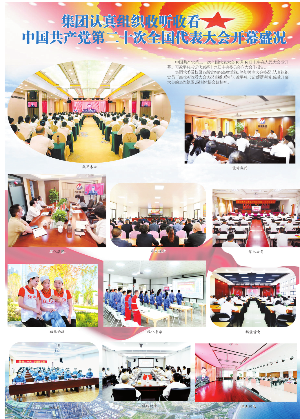 集團認真組織收聽收看中國共產黨第二十次全國代表大會開幕盛況