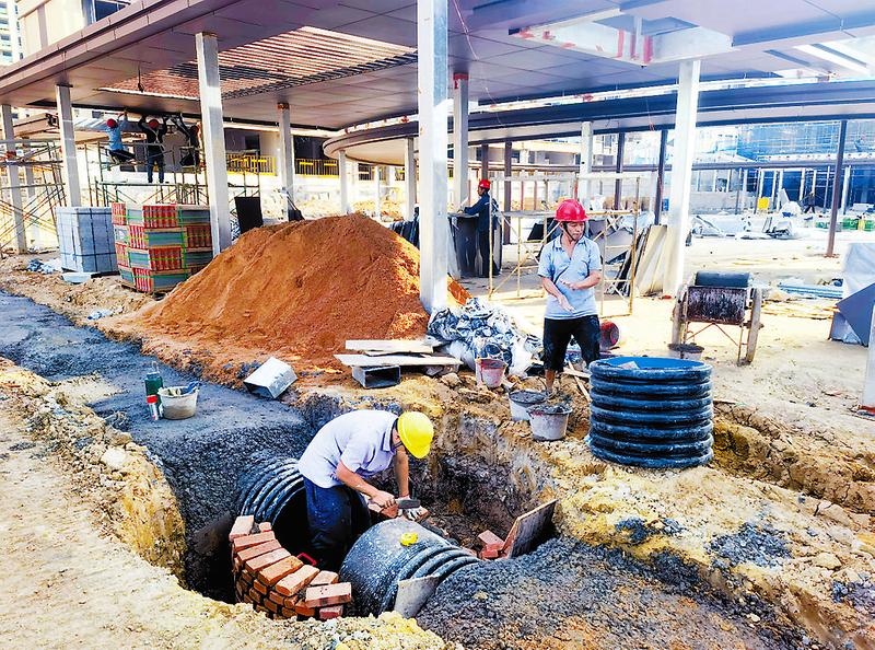 近日,在聯美公司美倫觀山苑(錦山壹號I期)南區項目各個施工現場,施工人員正在有序施工,該項目外墻真石漆及室外景觀土方回填已基本完工。(陳詩源攝)