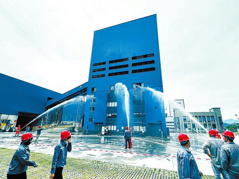 圖為建材控股廈門混凝土公司組織員工開展消防應急演練活動。