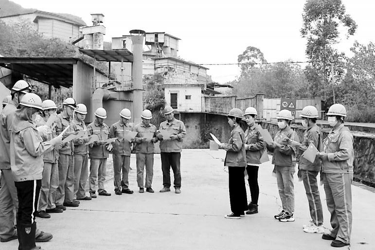 在金銀湖水泥作業現場,員工們圍成一圈,與女工宣講員一起學習黨的二十大精神,大家談發展、談變化、談政策、談感受。宣講過程中,女工宣講員們口號鏗鏘有力,把氣氛一次次推向高潮。