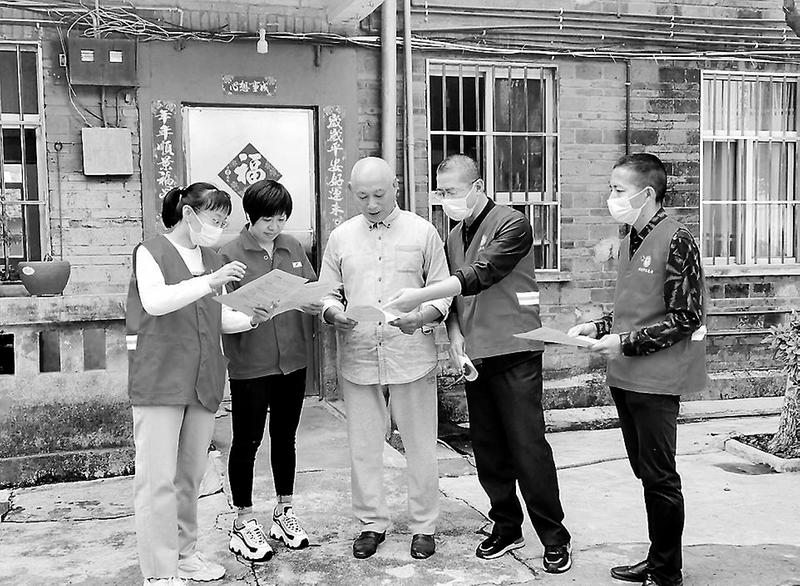 11月9日上午,福維公司組織黨員志愿者深入一線和居民區開展消防安全知識宣傳活動。圖為志愿者正在為小區居民講解火災的危害性和處置辦法。(翁留云 攝)