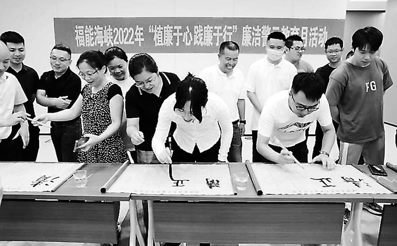 執“紀律”之筆,揮“信念”之墨,展“擔當”之紙,端“作風”之硯,用筆墨紙硯一筆一劃齊心書寫“清正廉潔”四個大字,這是福能海峽廉潔趣味活動上的一幕。