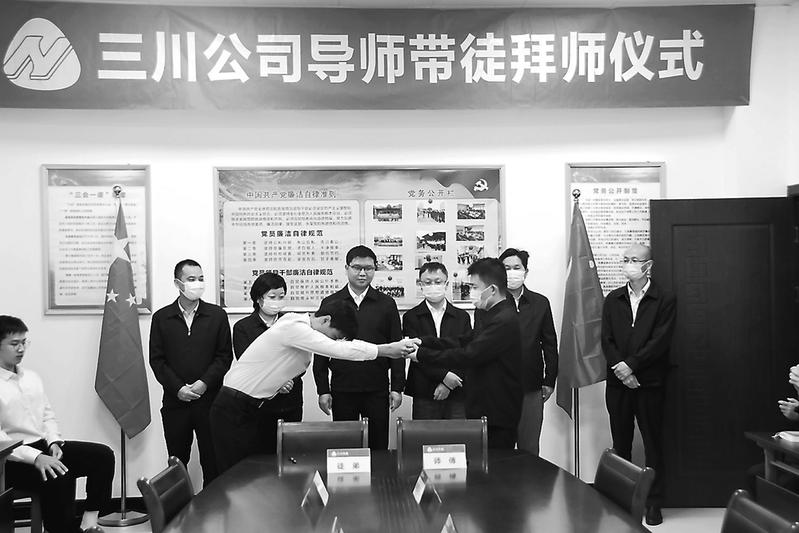為充分發揮骨干員工的引領和輻射作用,營造濃厚的學習氛圍,不斷打造具有高綜合素質和強專業能力的隊伍,近日,三川風電公司舉行“導師帶徒”拜師儀式。(戴國金梁劍鋒攝)