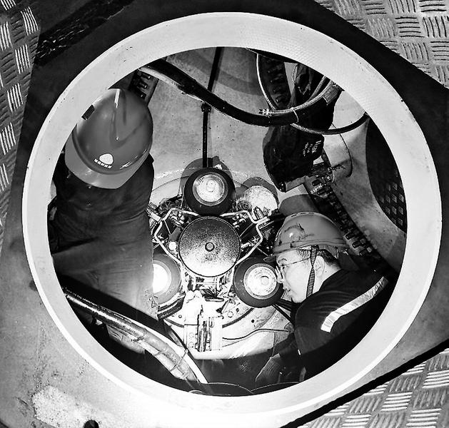 檢修人員在輪轂內部更換變槳缸密封圈