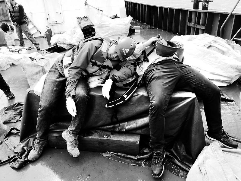 圖為該公司運檢人員在船上休息。