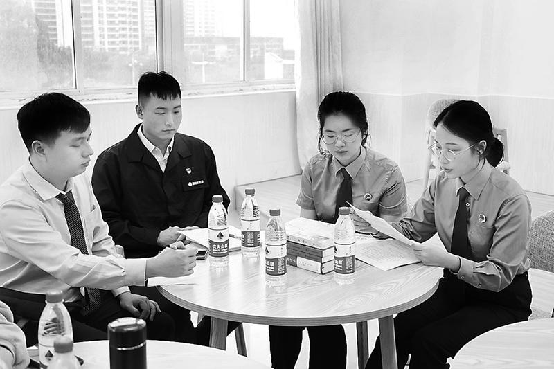 11月24日,受莆田市秀嶼團區委邀請,福能新能源公司團委選派青年職工代表唐福全(左二)到秀嶼區檢察院開展“‘青’聽二十大·逐夢奮斗正當時”之“秀·語”沙龍互動活動,與各界青年代表就關于如何在崗位上貫徹落實黨的二十大精神展開交流。(蔡小康 攝)