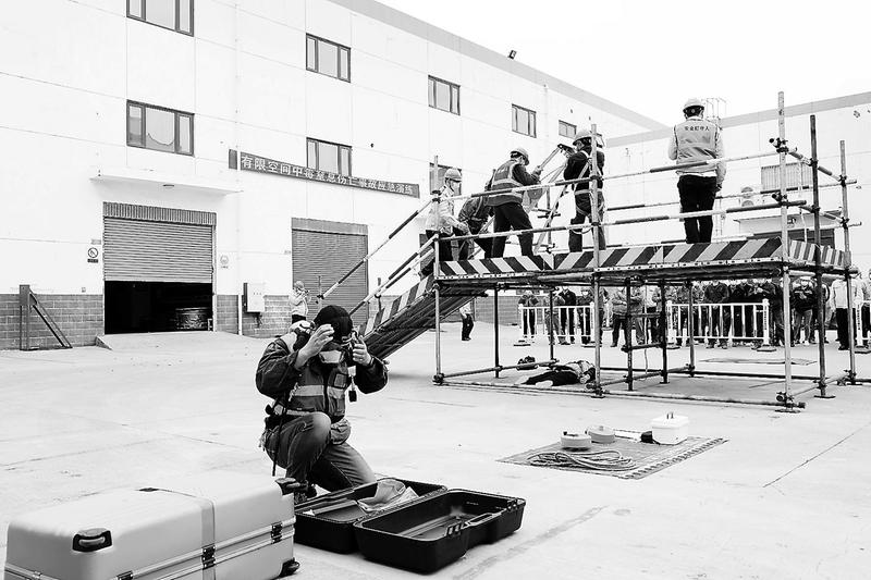 為提高公司員工應對有限空間事故的處置能力,熟悉有限空間應急處置程序,12月1日下午,鴻山熱電公司開展有限空間事故應急處理演練。(黃榮 潘進 攝)