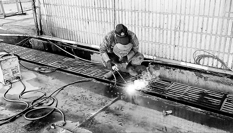 12月5日上午,福建煤電雁石發運站煤車在經過地磅時,不慎將地磅邊緣壓壞,為不影響年終煤炭運輸,該站機修人員第一時間進行搶修。(朱德月 陳群松 攝)