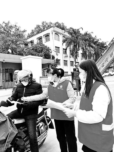12月初,福維公司安全環保部聯合紀檢監察室以及共青團青年志愿者開展交通安全知識宣傳。圖為志愿者在公司門崗處向進出車輛人員發放交通安全宣傳單。