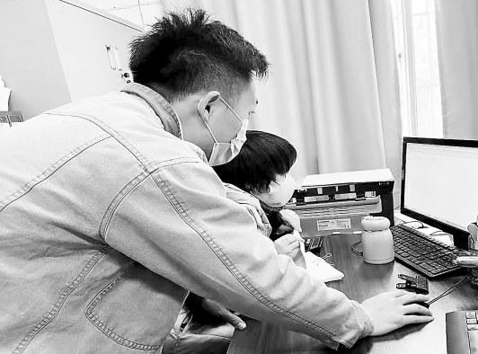 陳凱迪(左一)幫財務解決電腦卡頓問題