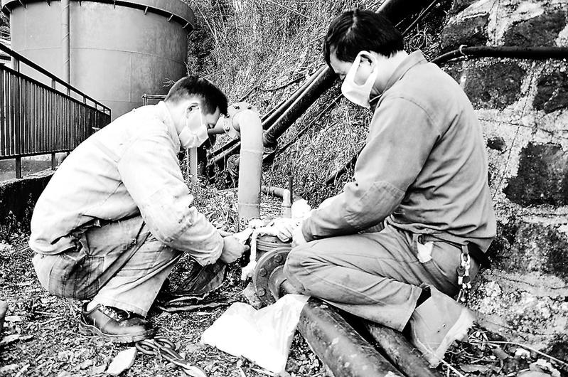 為了防止因結冰造成水管、水表等爆裂,近期,永安煤業公司池坪蘆坑煤礦用布條將礦區的水管、水表和壓力表等包扎起來,進行“保暖”。圖為12月19日,該礦機運隊職工在對工業用水管路的減壓閥進行包扎。