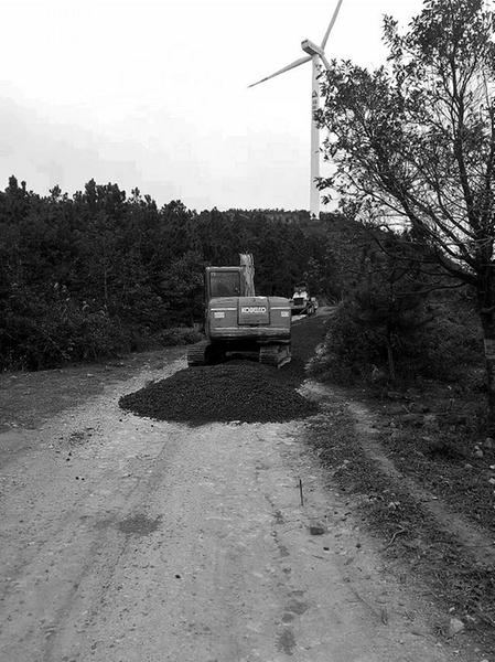 近日,福能新能源公司草山風電場約55公里的進場道路路面改造工程全部施工完畢,力發電機組的搶修效率,工作人員和附近村民的出行安全。圖為道路施工現場。