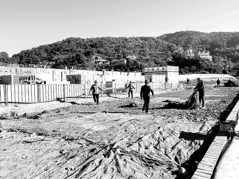 2022年12月29日,為保障施工現(xiàn)場晴天無塵、雨天無泥,營造綠色施工、文明施工的環(huán)境,聯(lián)美公司龍巖美倫·生態(tài)城E地塊一期項目部組織管理人員對施工現(xiàn)場裸露土進行覆蓋。(鄭思瑤 攝)