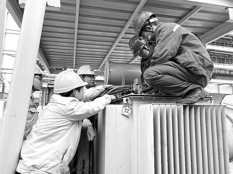 11月28日,春節(jié)后首個(gè)工作日,福能貴電公司生產(chǎn)現(xiàn)場(chǎng)一片忙碌的景象,員工們精神抖擻,奮力沖刺首季“開門紅”。圖為檢修人員正在處理機(jī)組缺陷。(張朝貴 竇剛 攝)