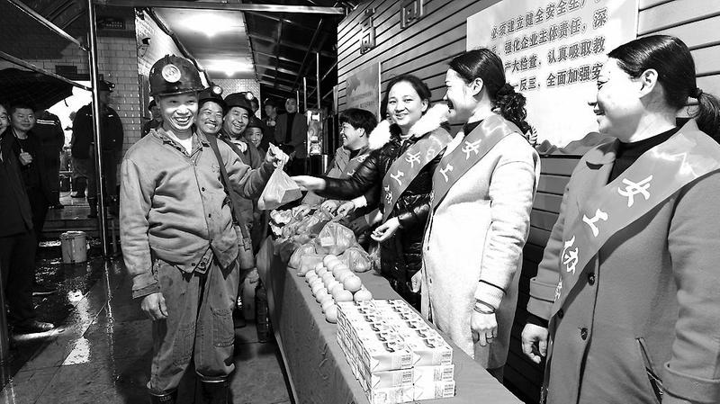 2月11日,永安煤業(yè)水井坑礦黨支部組織女工協(xié)管員開展“開工送大‘桔’”活動,給下井的職工送上桔子、雞蛋和飲料等,并叮囑大家時刻注意安全。