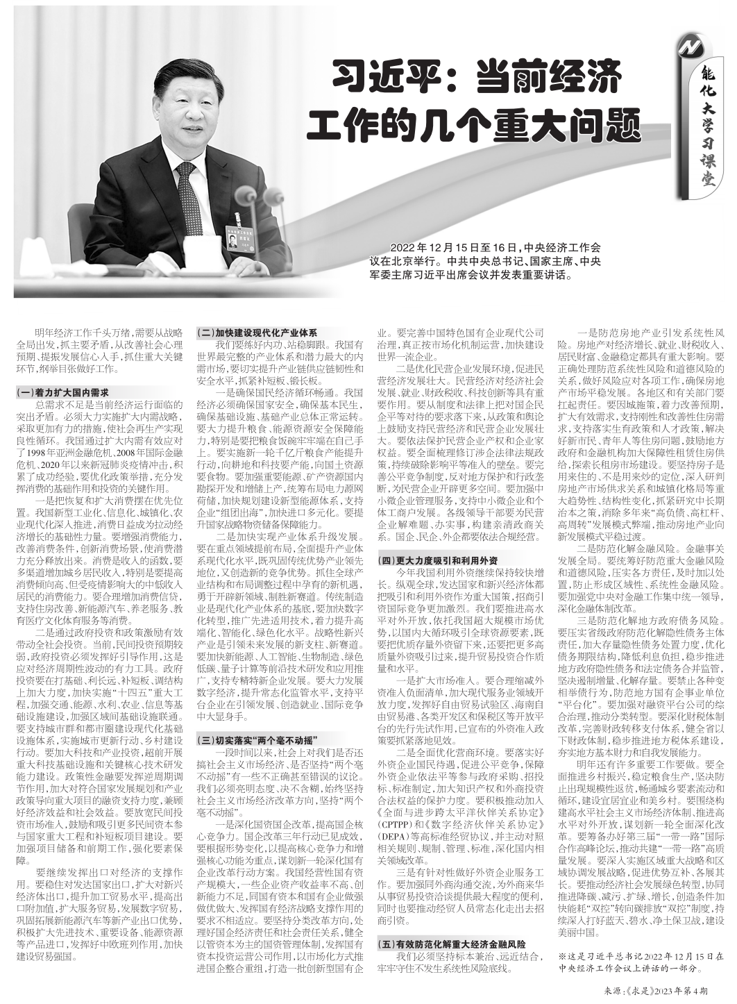 習(xí)近平:當(dāng)前經(jīng)濟(jì)工作的幾個(gè)重大問(wèn)題