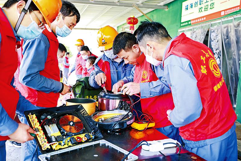 在第60個“學雷鋒紀念日”到來之際,能化集團各權(quán)屬企業(yè)開展了形式多樣的學雷鋒活動,以實際行動踐行新時代雷鋒精神。 圖為3月2日,福海創(chuàng)公司綜合第二、設(shè)備第一、設(shè)備第二黨支部聯(lián)合開展“踐行雷鋒精神弘揚新風尚”義務(wù)維修活動。 (鄭杰鵬攝)