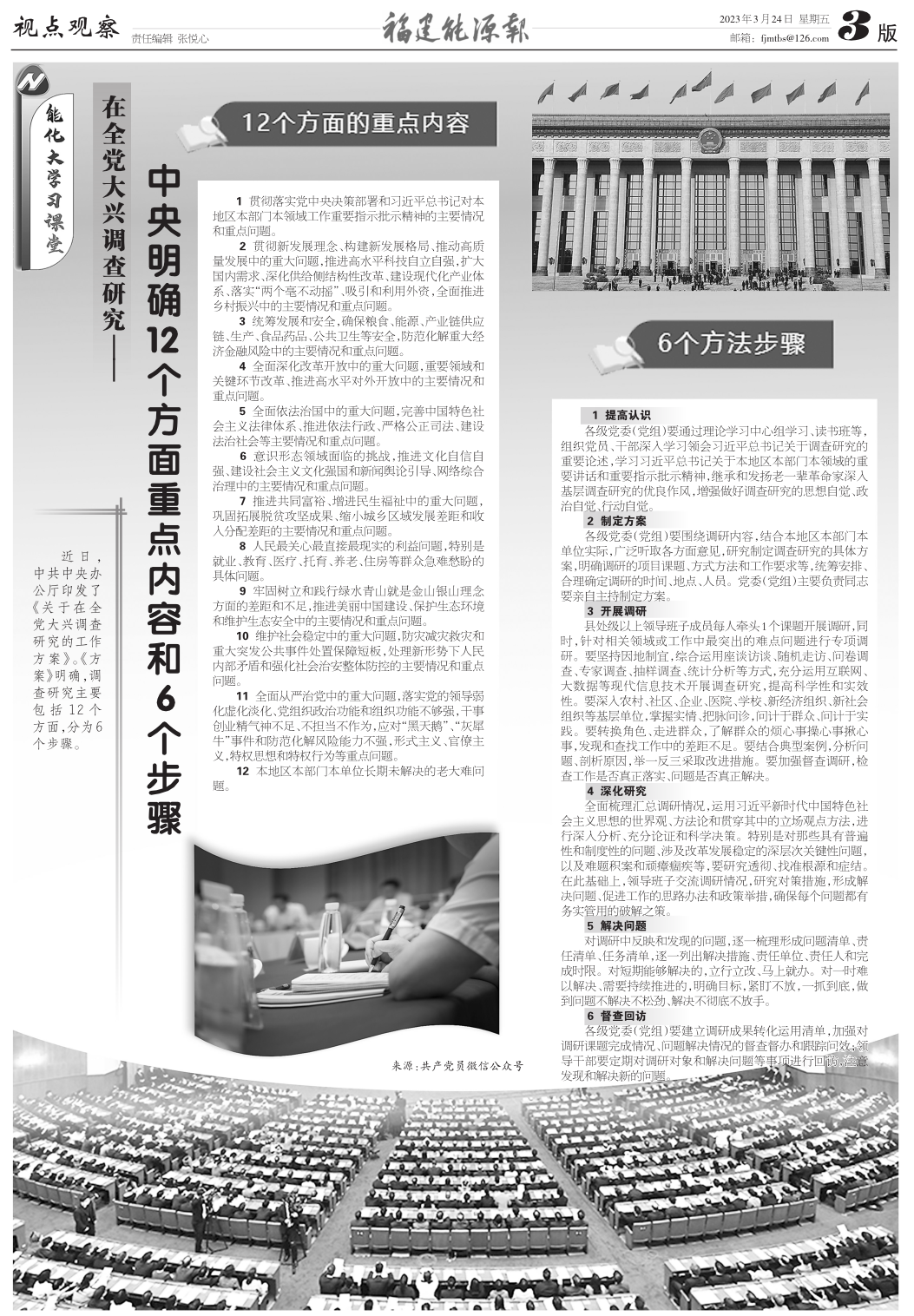 在全黨大興調查研究——中央明確12個方面重點內容和6個步驟