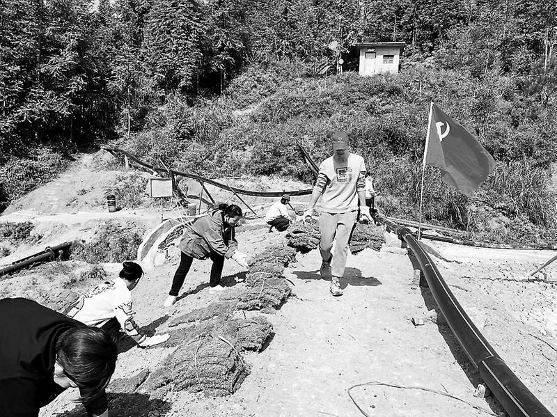 3月16日,邵武煤業公司機關黨支部聯合浦城礦業黨支部開展“為基層添綠,為黨旗添彩”主題黨日活動,共鋪植草坪500余平方米。(葉建豪 攝)
