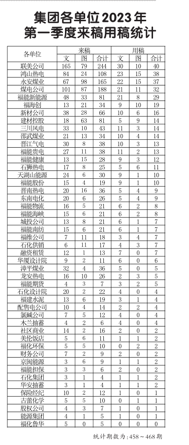 集團(tuán)各單位2023年第一季度來(lái)稿用稿統(tǒng)計(jì)