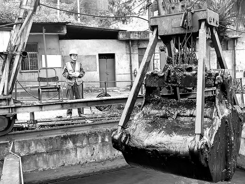 永安煤業(yè)公司西洋篩選廠牢固樹立“人人講效益”思想,持續(xù)打好“回收利用”經(jīng)濟算盤。圖為4月7日,該廠煤泥回收工在沉淀池回收煤泥。(陳榮壽 攝)
