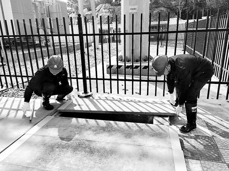 近日,為全面做好風(fēng)電場現(xiàn)場防汛應(yīng)急準備工作,福能新能源公司抓實防汛專項自查工作,對各風(fēng)電場重點區(qū)域、關(guān)鍵部位、薄弱環(huán)節(jié)進行隱患排查,全力以赴做好防汛備汛工作。圖為該公司尖峰風(fēng)電場值班員正在檢查升壓站電纜溝。(蔣文君 攝)