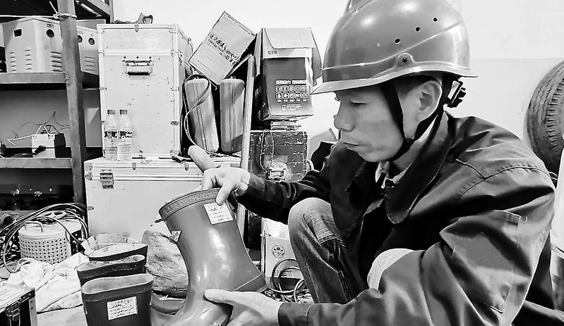 近日,福建煤電電力安裝檢修公司對電力安全工器具進(jìn)行耐壓試驗檢”,為備戰(zhàn)“雨季三防供電做好充分準(zhǔn)備。圖為該公司設(shè)備檢測技術(shù)人員將檢驗合格的高壓絕緣靴貼上“身份”標(biāo)簽。