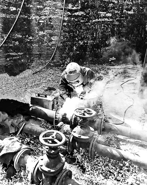 天湖山能源公司多管部堅持做好供水工作,及時消除故障。圖為4月13日,該公司二級泵供水管路總閘閥老化滴落,水電班人員利用午休時間開展搶修,保證職工用水需求。
