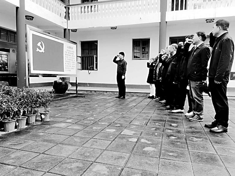 4月12日,退管中心黨支部組織黨員和所屬退管會主任開展瞻仰閩中革命紀念園紅色教育基地活動。圖為退管中心黨支部黨員重溫入黨誓詞。(退管 攝)