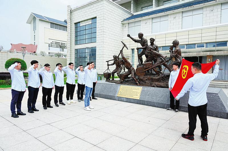 為慶祝“五四”青年節的到來,4月28日上午,福能新能源公司團委組織團員青年到城廂區東圳水庫開展“學習東圳精神”主題活動。圖為團員青年在東圳水庫重溫入團誓詞。(鄢青梅 攝)
