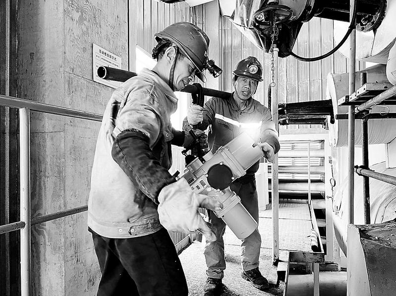 ④5月1日,石獅熱電公司集控室內(nèi)運(yùn)行人員穿行如梭,設(shè)備部工作人員放棄假期休息時(shí)間,對熱網(wǎng)管道閥門進(jìn)行計(jì)劃性檢修。圖為檢修人員正在更換閥門。(蘇永洪 攝)