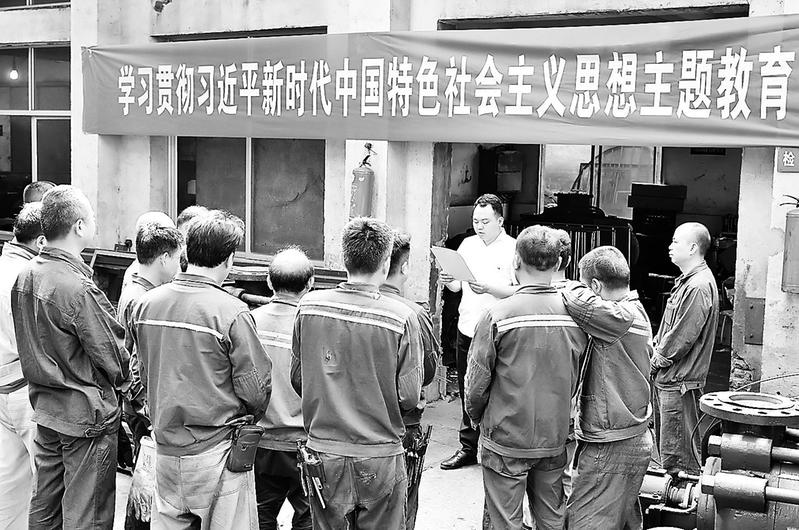 近日,永安煤業公司仙亭煤礦組織黨員深入開展學習貫徹習近平新時代中國特色社會主義思想主題教育。圖為該礦黨員在車間基層員工中開展主題教育宣講。(蘇標平 攝)